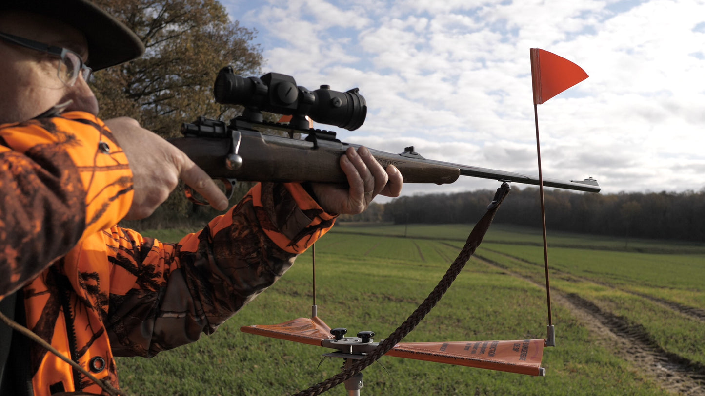 Le respect de l'angle de tir des 30° : Conçue pour les postés sur mirador ou les postes amovibles en battue, le tir en dehors d'un angle matérialisé de 30 degrés de part et d'autre du tireur réduit considérablement les risques d'accidents et de ricochets. C'est l'outil idéal pour garantir la sécurité de votre chasse.