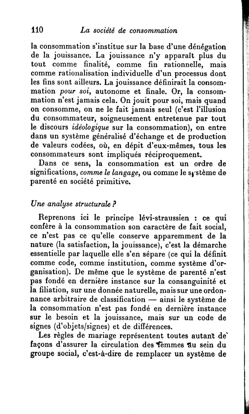 La société de consommation : ses mythes, ses structures Bookreader Item Preview. Baudrillard, Jean. Publication date 1970 Topics Consumption (Economics) Publisher [Paris] : Denoël Collection inlibrary; printdisabled; internetarchivebooks Contributor Internet Archive Language French . 318 p. ; 18 cm Bibliography: p. 317-318 Notes. cut off text due to tight binding. Access-restricted-item.