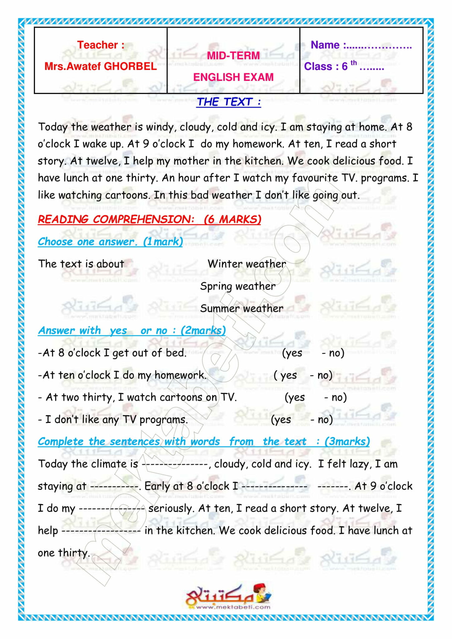 Examen Anglais 6ème année trimestre 2 مكتبتي المنصة التعليمية