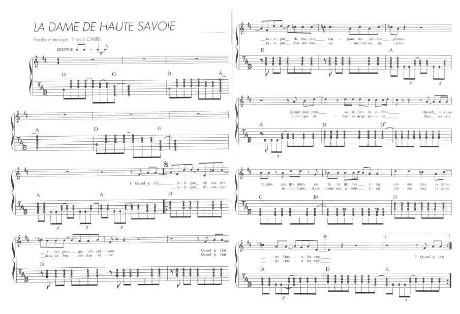 Partition guitare francis cabrel la dame de haute savoie